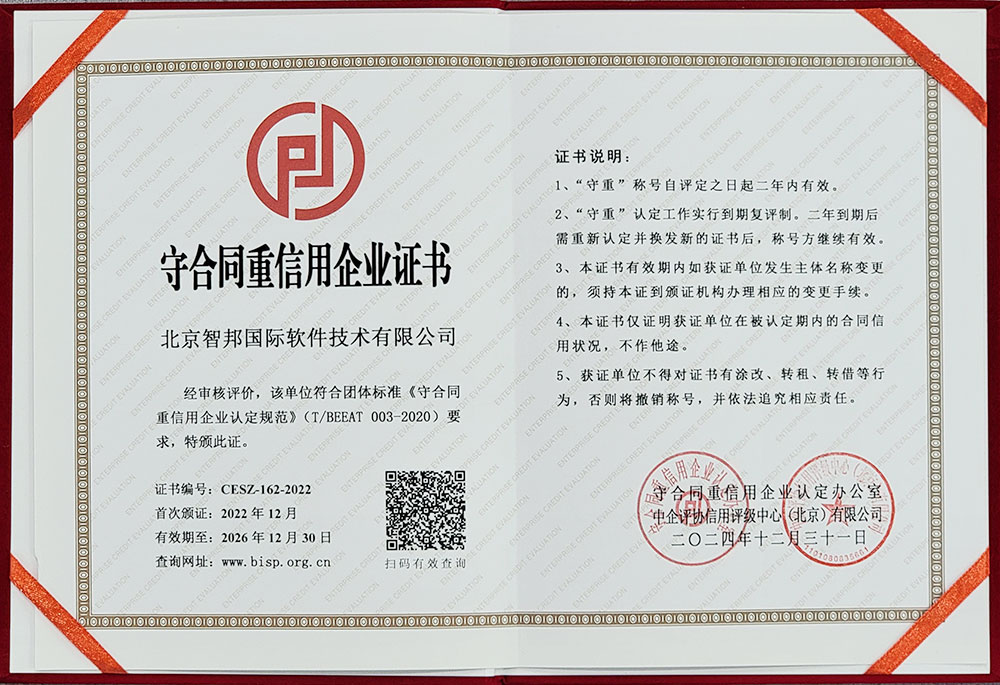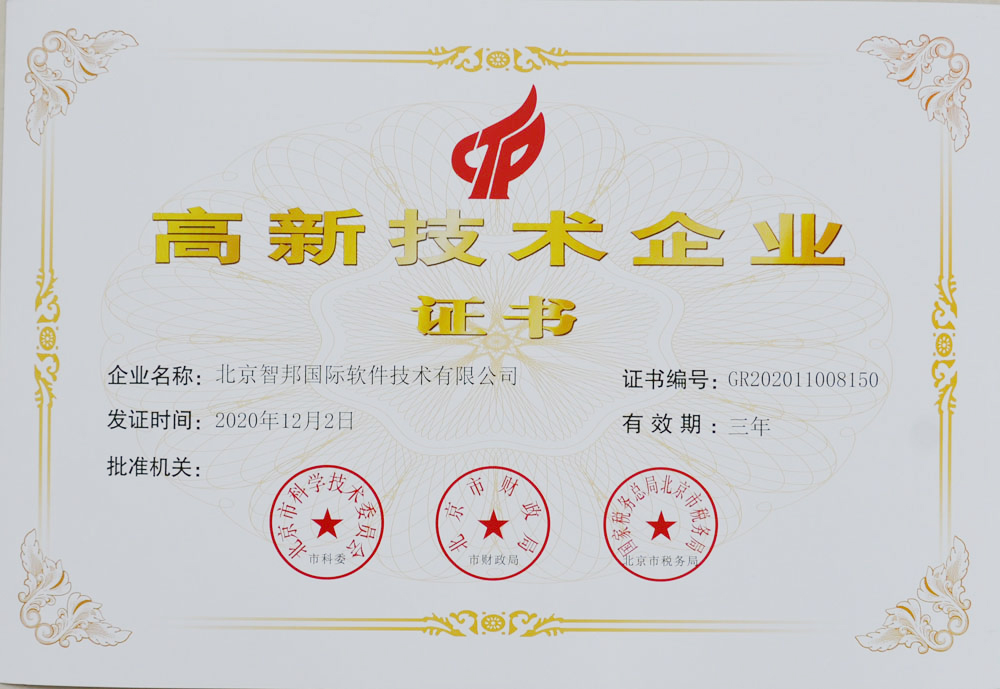 北京智邦国际软件技术有限公司是经中华人民共和国工业和信息化部以及北京经济和信息化委员会评定和审核的双软企业,是国家重点支持的软件