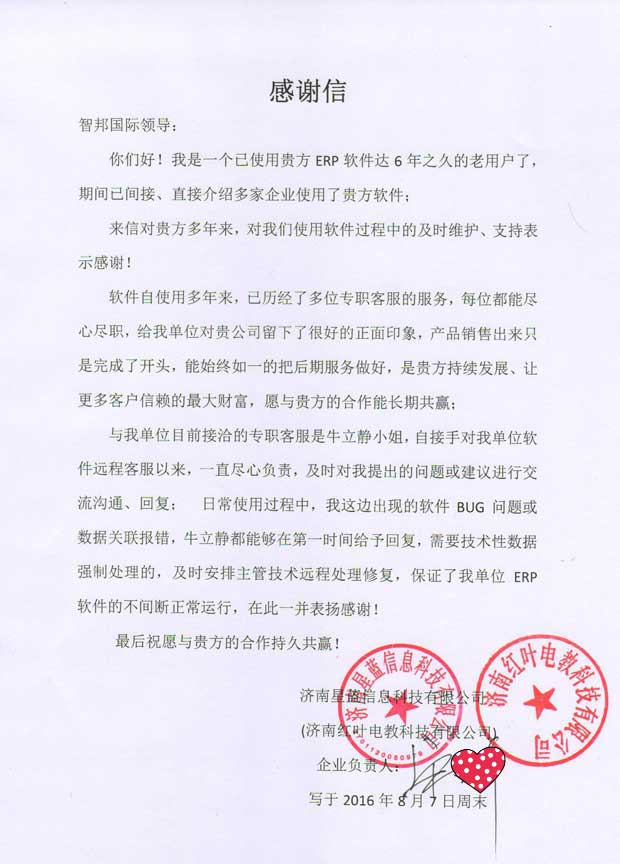 智邦国际是中国企业管理软件领导品牌,经过10多年的发展,在同行业中创造了第一个最高的性价比和第一套最完备的服务体系。了解到山东济南星蓝信息科技有限公司的业务特点和管理需求后,智邦国际工程师结合电子工业行业特点和丰富的实践经验,第一时间为其部署了一套ERP系统。