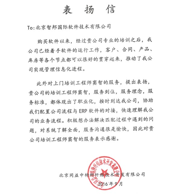 信息孤岛、流程脱节、部门壁垒等问题,是很多企业遇到的管理难题,尤其牵扯到多个部门的业务流程时更是如此,先进信息化系统的应用,能够促进企业业务更加顺畅。相信在智邦国际ERP系统的协助下,北京同益中特种纤维技术开发有限公司定能利用先进管理模式和信息系统,完整记录每个环节业务信息,将以往繁琐机械的企业管理转变成快捷高效的日常工作,合理配置和利用企业各方资源,全面提升经营管理效率。