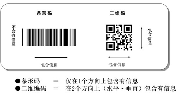 一维码只能在一个方向(一般是水平方向)上表达信息,在垂直方向则不表达任何信息,其一定的高度通常是为了便于阅读器的对准;而二维码在水平和垂直方向都可以存储信息。一维码只能由数字和字母组成,一般只可容纳30个字符左右;而二维码能存储数字、字母、汉字、字符、图片、声音、视频、网址等,可容纳多达1850个大写字母或2710个数字或1108个字节,或500多个汉字,比普通条码信息容量约高几十倍。此外,二维码容错能力极强,具有纠错功能,当其因穿孔、污损等引起局部损坏时,照样可以正确得到识读,损毁面积达50%仍可恢复信息。