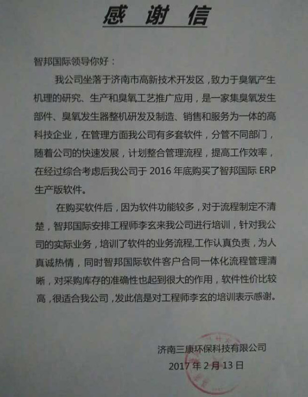 机械行业普遍存在客户个性需求多、产品更新换代快等问题,生产计划制定和生产任务管理水平,直接影响产品能否快速上市,销售能否顺利开展。相信在智邦国际ERP系统的协助下,山东济南三康环保科技有限公司定能实现生产与业务资源的全面集成、无缝流转、自动协同,在一套系统里实时跟踪、灵活配置、精准统计所有资源,让企业管理随需而变,市场拓展游刃有余。