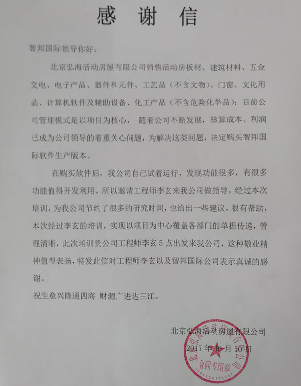 北京弘海活动房屋有限公司智邦国际ERP系统项目实施现场