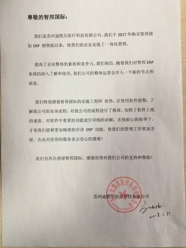 苏州迪凯尔医疗科技有限公司智邦国际ERP系统实施现场