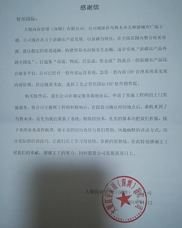 大银商业管理(深圳)有限公司智邦国际ERP系统实施现场