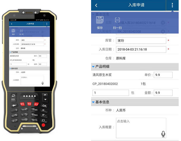 功能价值:智邦国际31.80版本新增PDA端扫码入库功能,只需用PDA扫一扫入库产品、序列号、入库仓库等的一维码或二维码,就能自动读取、保存产品的入库信息,数据实时上传至智邦国际企业管理软件,对应产品库存信息同步更新,入库及时又准确,收货事半功倍。
