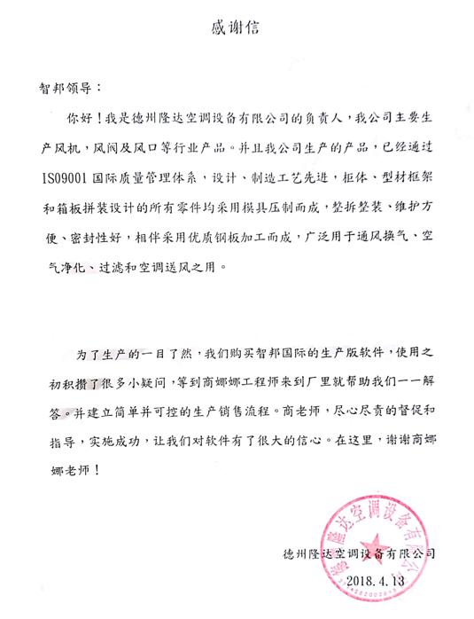 德州隆达空调设备有限公司智邦国际ERP系统实施现场