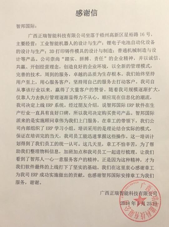 广西正瑞智能科技有限公司智邦国际ERP系统实施现场