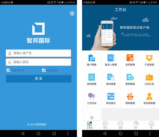 就拿移动办公来说,智邦国际ERP系统在全程一体化管理领域取得成功后,一方面在倾听用户心声中,发现外勤管理是很多企业的痛点;另一方面,移动互联网飞速发展,智能终端日趋普及,为移动办公提供了很好的技术和环境。于是,智邦国际率先在业内推出了ERP系统移动端App,可在Android、iOS、Windows Phone的手机和平板上使用。