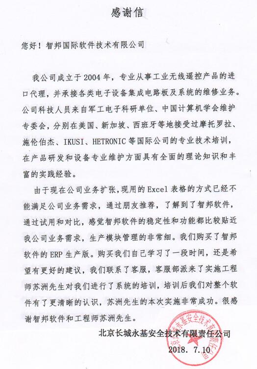 北京长城永基安全技术有限责任公司智邦国际ERP系统实施现场