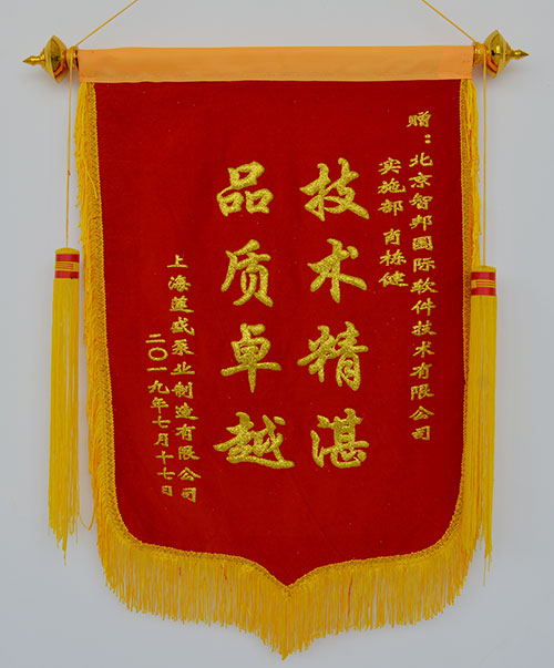 上海莲盛泵业制造有限公司锦旗致谢智邦国接ERP系统