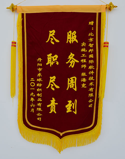 丹阳市东球纺织制品有限公司锦旗致谢智邦国际ERP系统