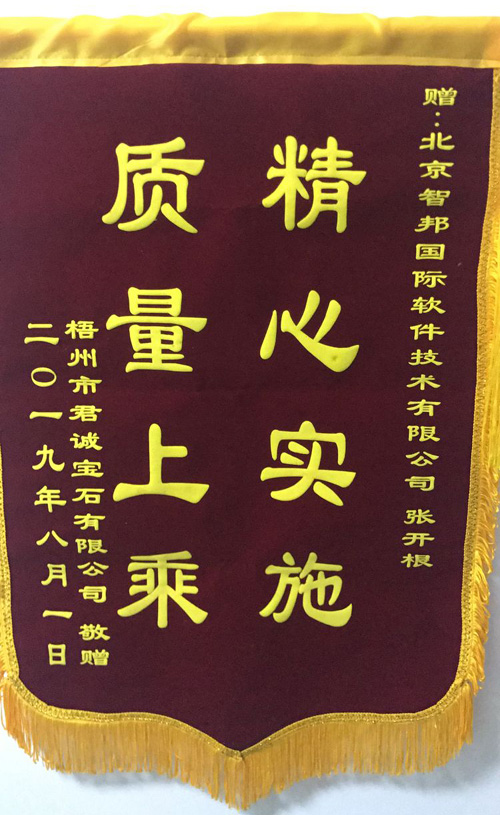 梧州市君诚宝石有限公司锦旗致谢智邦国际ERP系统