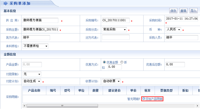 一、 系统支持直接添加采购单,也可由项目详情界面、合同详情界面、预购合并成采购来生成采购单。通过生产管理模块进行的MRP运算,为采购提供最精准的数据,从而最大限度降低物料库存,减少货物积压,缩短半成品、原材料的在库时间,甚至做到“零库存”,继而减少物料占用资金,加快库存周转,加强对应收应付款项的管理等,为企业增加可流动性资金。