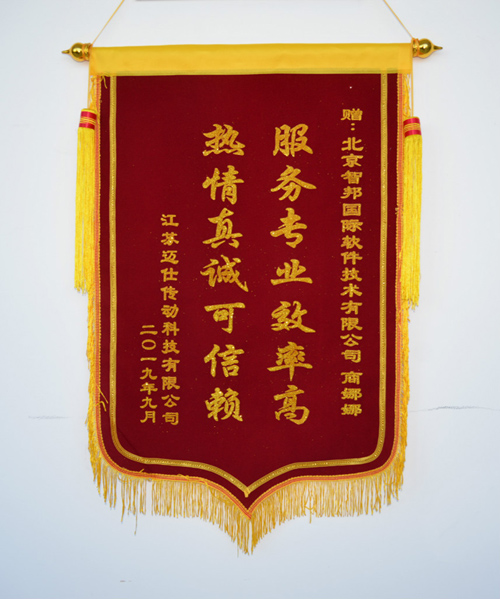江苏迈仕传动科技有限公司锦旗致谢智邦国际ERP系统