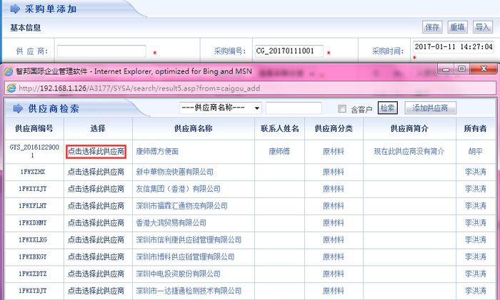 智邦国际ERP系统采购单添加