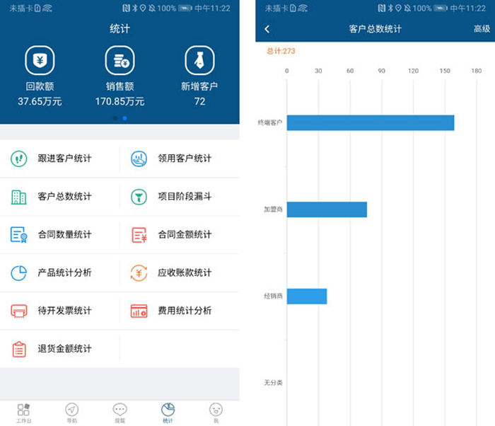 有了智邦国际ERP系统丰富的图形化报表,无论制表人,还是看表人,都不用再像看天书一样那么难了。比如合同数量,怎么分析才能一眼就明白?总共有多少合同,每个时段占比多大?一张图一秒就摸清。