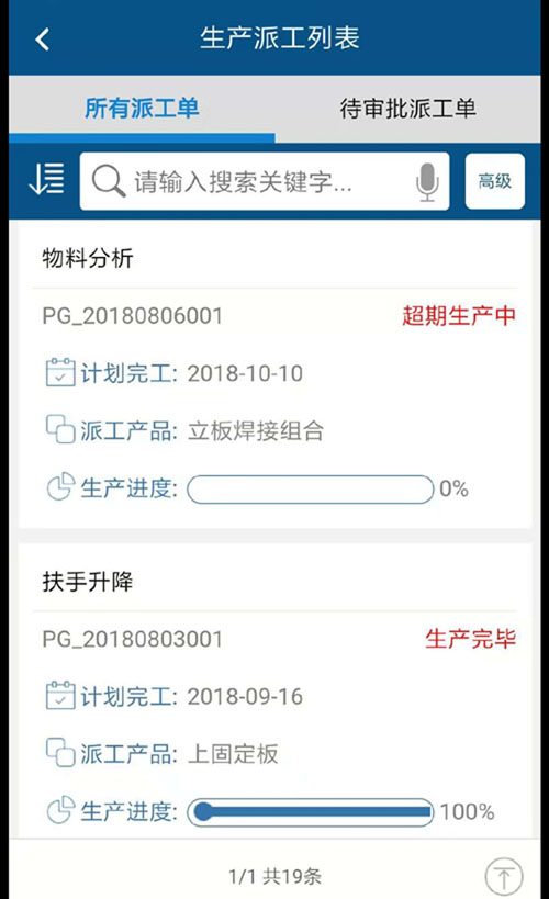 智邦国际ERP系统APP生产派工列表