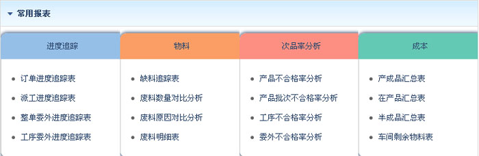 一、为了方便生产人员和管理层能够在一个页面中完成生产操作、提醒、查看和分析等相关所有操作,提高工作效率,智邦国际ERP系统生产版提供了生产工作台功能。工作台包含5部分信息:生产进入、生产预警和通知;待完成和已完成事项;设备、人员状态和派工单进度完成指数;进度追踪报表、物料报表、次品率分析和成本分析等常用报表。通过一个页面为企业内部人员实时呈现生产相关事宜,实时监控生产全流程,只需一键快捷添加各类生产数据,即可将整个生产车间迁移到系统中。线上工作台协助业务人员实时掌控生产全程,信息化管控助力管理层精准决策,实现业务人员高效工作,产品高质出厂。
