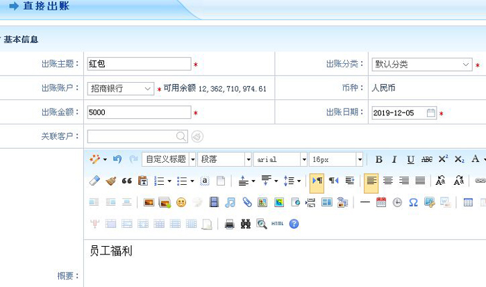 智邦国际工程师在了解到企业的基本需求之后,为其演示了智邦国际ERP系统生产版,企业管理层表示系统功能基本满足企业所需,并且最终购买了智邦国际ERP系统。智邦国际ERP系统生产版拥有销售、库存、生产、财务,人资及办公等功能模块,其中财务功能模块包含了财务总账、现金银行、直接出入账、账间转账、收款开票管理等功能,单就一键出入账管理来说,安全且高效,线上智连线下,实现智能化管理。