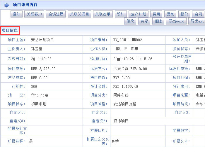一、系统支持从启动、计划、分配、执行、进度、结果到归档整个周期的一体化管理,还支持与项目密切相关的客户、合同、售后、预算、财务等集成化管理,智能掌控项目全流程,助力企业让数字化管理事半功倍。在系统中可以添加多个协作方,支持多联系人管理,可将自己的项目共享给需要的人员,并可随时取消共享,轻松实现项目多方协作。此外,通过项目详情,可以清楚了解每个项目、每个阶段、每一流程的实时状态,通过互动点评,可在第一时间对项目成员进行指导帮助,或是互相讨论,指令上传下达等操作,助力企业管理层人员可以实时直观查看、了解和跟踪任一项目,助力员工查漏补缺,提高工作效率,让项目过程在可视可控中进行。