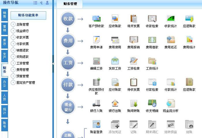 二、系统的预算管理功能与会计凭证自动生成功能,简化了企业单据传递的工作流程;使项目管理各环节紧紧相扣,严格了程序操作规范;ERP系统的实时数据可为企业决策提供更为准确、及时的依据。不仅能在整个系统内实现数据的共享,许多智能化功能,比如全局搜索、付款收款统计和应收应付等支持系统各个功能模块间的数据互联互通和信息集成,大大提高了系统为企业带来的价值。