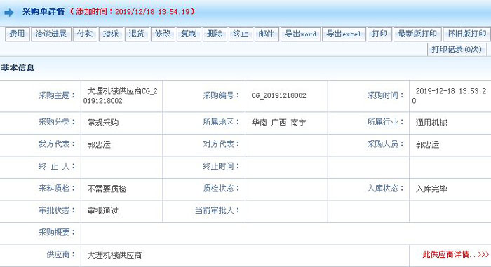 智邦国际ERP系统采购单详情界面