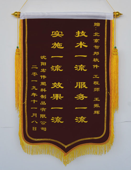 沈阳宏伟塑料制品有限公司向智邦国际送致谢锦旗