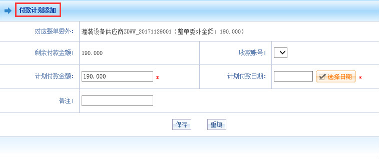 智邦国际ERP系统添加付款计划界面