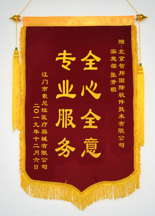 江门市索尼娅医疗器械有限公司向智邦国际送致谢锦旗