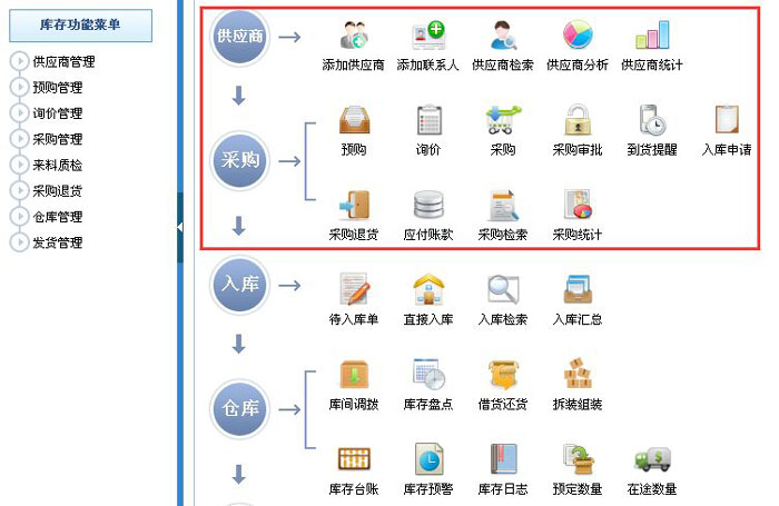 智邦国际进销存系统供应商、采购管理导航