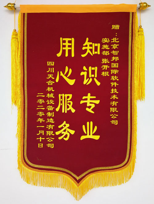 天合机械公司锦旗致谢智邦国际机械行业ERP系统
