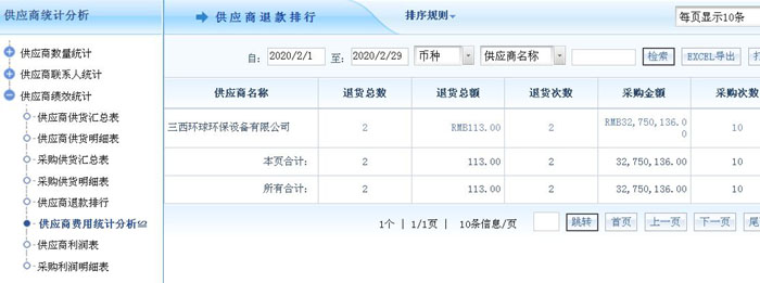 一、系统支持线上添加供应商信息,可将供应商基本情况、业务情况、财务信息、资质信息等实时记录,之后供应商信息将会在供应商列表中显示,一目了然。系统会根据录入的信息,科学计算、智能统计,按部门、人员、区域、行业等维度统计供应商数量,以及按区域、行业、性别统计供应商联系人信息,并可以一键生成供应商供货汇总、明细、退款、利润等报表。助力企业建立一份长期的采购计划和供应商计划,并据以高效监测供应商的按时供货率。此外,系统可在添加采购时,一键查看供应商历史供货价格分析、建议进价和采购限价等,让采购人员可高效选择合适的供应商,降低采购成本。