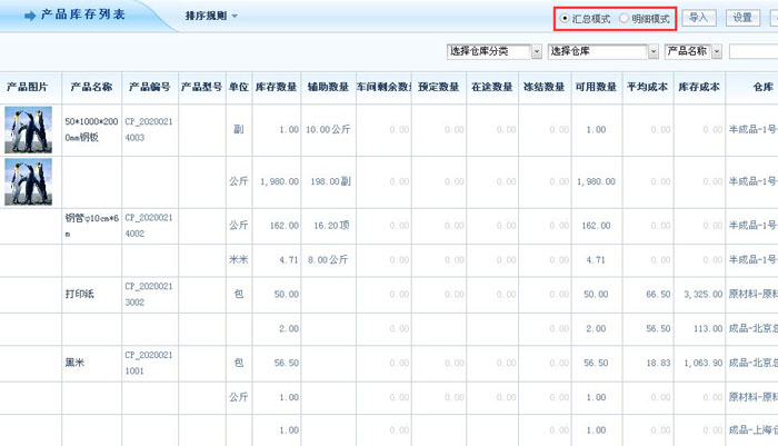 一、在系统中,支持以汇总与明细两种模式,实时查看库存现状,产品图片、库存数量、在途数量、可用数量、库存成本等信息一目了然,让企业可以随时随地查询商品的库存和价格等数据,保证仓库数据精准。同时,业务人员还可以根据查询到的实时商品库存和价格,及时为客户报价下单,提升工作效率与客户满意度。此外,在产品添加界面,可以自定义设置新添产品的库存下限与库存上限,设置之后如果此产品的库存低于下限或高于上限,系统都会发出库存预警,避免超买超卖等情况的发生,实现订单与库存的实时联动,智慧销售。