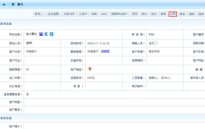 二、此外,在系统中可以在一个界面中了解关于合同的所有信息,基本信息、金额信息、审批记录、洽谈进展、回款开票记录、出库发货进展等均可一键查看,方便企业全面把握合同情况。并且可以在一个界面中完成所有与此合同相关的业务流程,而无需在多个界面间转换,一键直达目标单据,为企业节约大量的时间和精力,大幅提高工作效率。同时,系统还会根据现有数据进行智能统计分析,例如可按照部门、小组、人员来对合同数量进行分析统计,助力企业直观掌握合同数量情况,也可实时查看合同金额走势情况,让企业更加直观清晰分析合同金额信息,实现精益营销。
