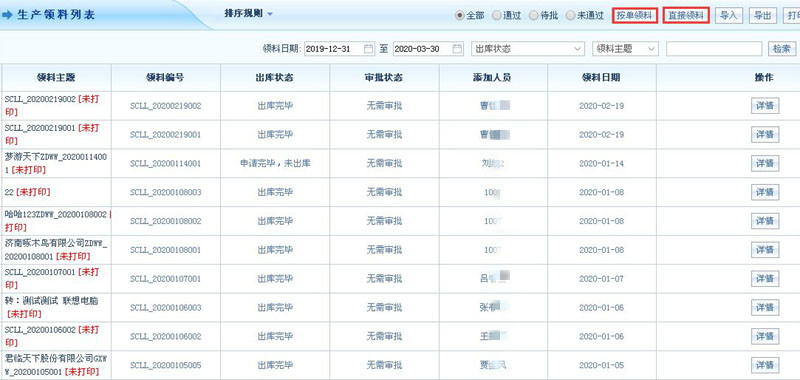 一、系统支持企业线上智能管控生产领料、补料、退料、废料等环节,例如当企业生产过程中需要领用材料时,业务人员即可一键按单领料或是直接领料,无需重复性输入数据,提高领料的准确性与效率。可以自由设置生产领料单的打印格式来打印生产领料单,还为企业提供了领料回收站,以防止企业误删单据等情况的发生。同时,在系统中可以根据简易、标准、精确等不同物料分析策略进行物料分析,继而对需要生产的产品数量、开工日期、完工日期等进行智能规划,实现敏捷生产。