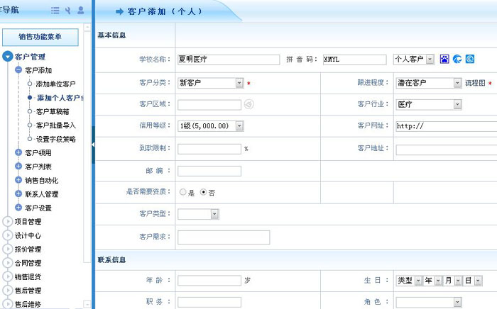 智邦国际ERP系统线上手动添加客户