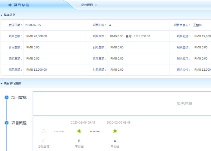 智邦国际ERP系统项目总览执行追踪部分界面