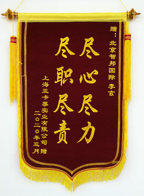 上海亚卡黎实业有限公司向智邦国际送致谢锦旗