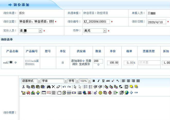 智邦国际ERP系统由报价一键转询价
