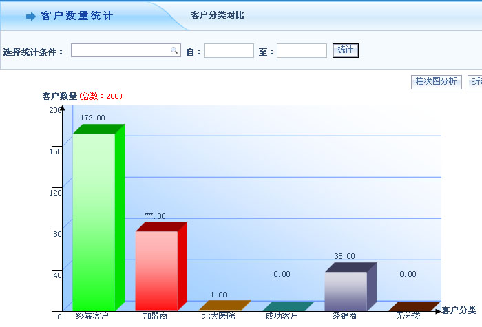 智邦国际ERP系统按柱状图直观分析客户数量