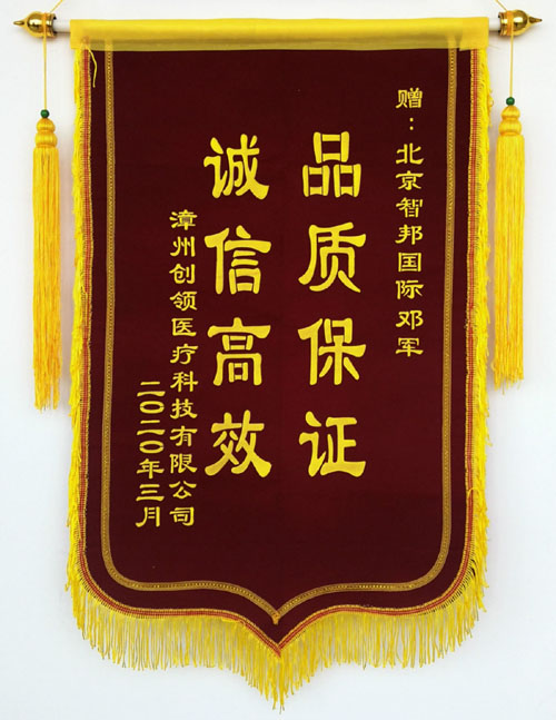 漳州创领医疗科技有限公司向智邦国际送致谢锦旗