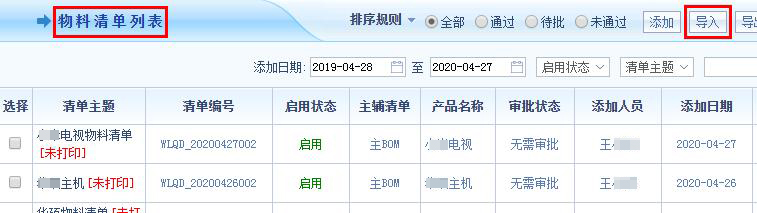 物料清单导入,生成产品