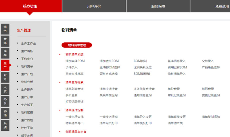 智邦国际ERP系统BOM清单核心功能