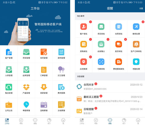 以融合了5G、AI、loT等新基建技术的智邦国际ERP系统为例,只需设置好数据连接和预警方式,就能通过电脑、手机、平板、PDA等多终端,实时收集和打通客户、项目、订单、供应商、采购、仓库、生产、财务、售后等供应链全过程数据。而且系统支持个性化设置,一步到位升级企业内外连接的方式、效率和质量。