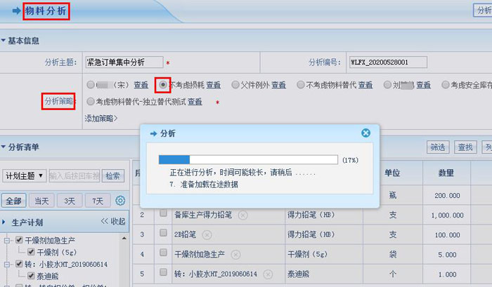 不同场景有不同的决策需求,系统还支持暴力算法。比如,成百上千层物料清单,一键修改产品比例、数量,所有关联数据自动同步;无论多少生产计划,需求多么复杂,一键选择不同分析策略,秒级给出不同物料分析结果。