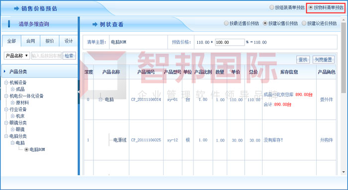 智邦国际ERP系统一键销售价格预估