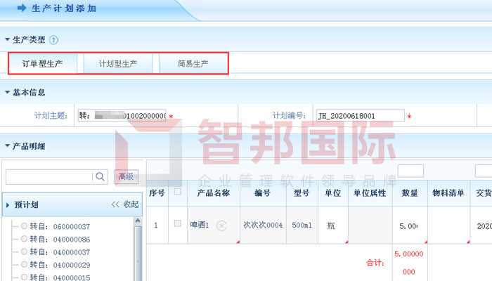 智邦国际ERP系统三种生产类型