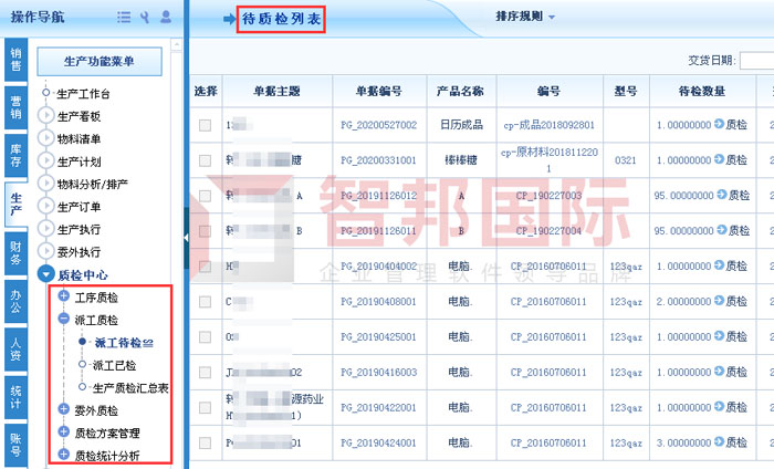 智邦国际ERP系统质检中心及派工待质检列表