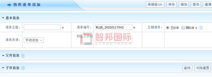 对于物料清单管理,智邦国际ERP系统支持实体、虚拟、主辅BOM管理,并可实现虚拟BOM“嫁接式”使用,灵活操作。还可以对BOM进行不限级划分,BOM可以Excel导入或直接复制,一次添加可以多次使用,BOM导入可同步生成产品,并可以关联产品信息、工艺流程等,方便产线安排,同一产品不同BOM中可以建立不同的物料替代关系,产品比例自动换算,支持树状、多阶、单阶3种方式查看BOM,数据信息清晰可见。