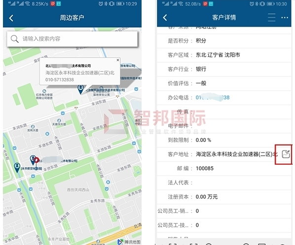 智邦国际ERP系统APP周边客户查询(局部图)